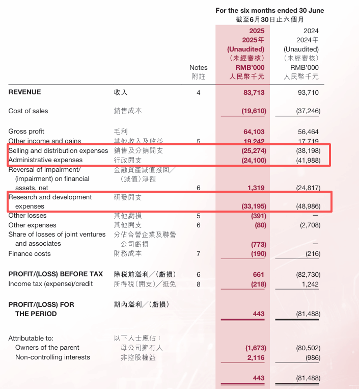 2025年上半年,鹰瞳科技营收为8371.3万元,同比下降10.67%,也从侧面印证了这条道路的艰难。在此背景下,公司不得不缩减开支,试图通过节流缓解经营压力,2025年上半年的费用削减力度堪称激进。