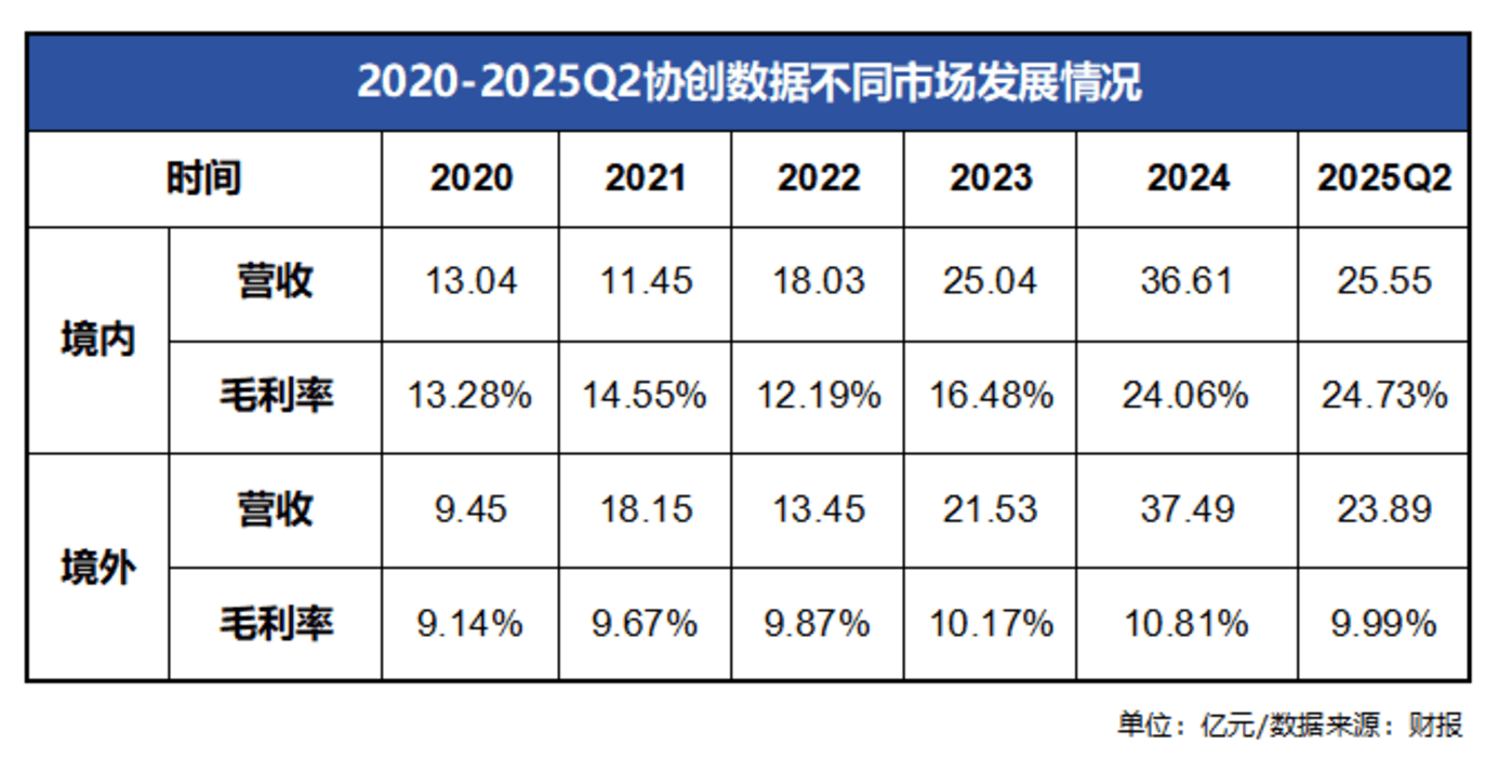 再看境内、境外不同市场的营收贡献,虽然自2020年以来偶有起伏,但是额度基本持平。奈何在利润率环节,境外市场普遍维持在10%左右,2025年上半年还出现了下滑;境内市场有波折,不过向上趋势十分明显。