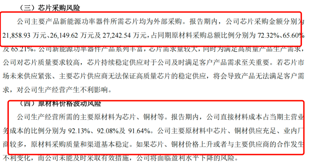 招股书显示,2022年至2024年,钜芯科技营业收入分别为3.51亿元、5.58亿元和5.64亿元,净利润分别为2743.92万元、6659.15万元和5457.26万元,毛利率分别为19.29%、21.61%和16.70%。其中新能源功率器件业务收入从2022年的3.16亿元增长至2024年的5.45亿元,占主营业务收入比例从91.95%提升至97.88%,已成为公司绝对核心业务。