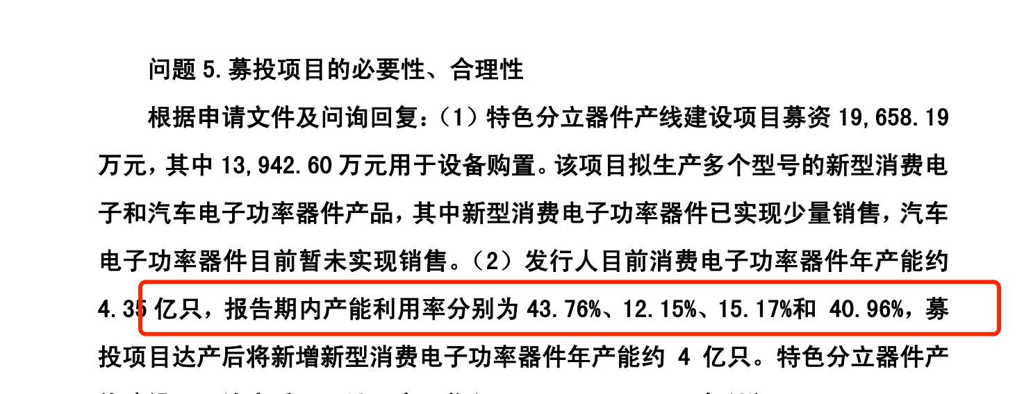 另一争议点在于“低产能利用率下的扩产”。目前公司消费电子功率器件年产能约4.35亿只,报告期内产能利用率波动剧烈,最低仅12.15%。然而,募投项目计划新增4亿只产能。监管质问其商业合理性。公司解释称,受宏观经济及行业景气度影响,近期消费电子需求疲软导致利用率低,但这并不影响对未来市场需求的布局。