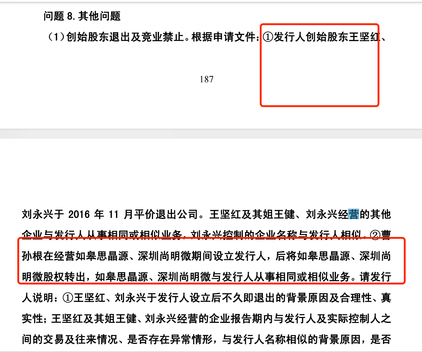 此外,创始股东王坚红、刘永兴及其关联方因经营与钜芯科技相似的业务,于2016年11月平价退出。监管层亦要求公司说明这两位创始人退出的背景及合理性。
