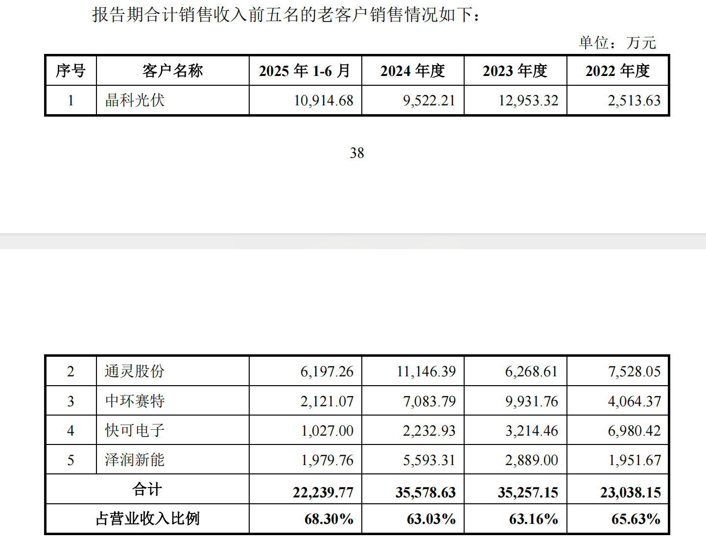 值得关注的是,尽管连续三年实现盈利,钜芯科技经营活动现金流量净额持续为负,报告期内分别为-6109.34万元、-5620.16万元和-1595.13万元,均低于同期净利润。此外,客户集中度较高,前五大客户销售收入占比报告期内分别为70.74%、68.08%和76.69%,2024年第一大客户通灵股份销售额达1.115亿元。
