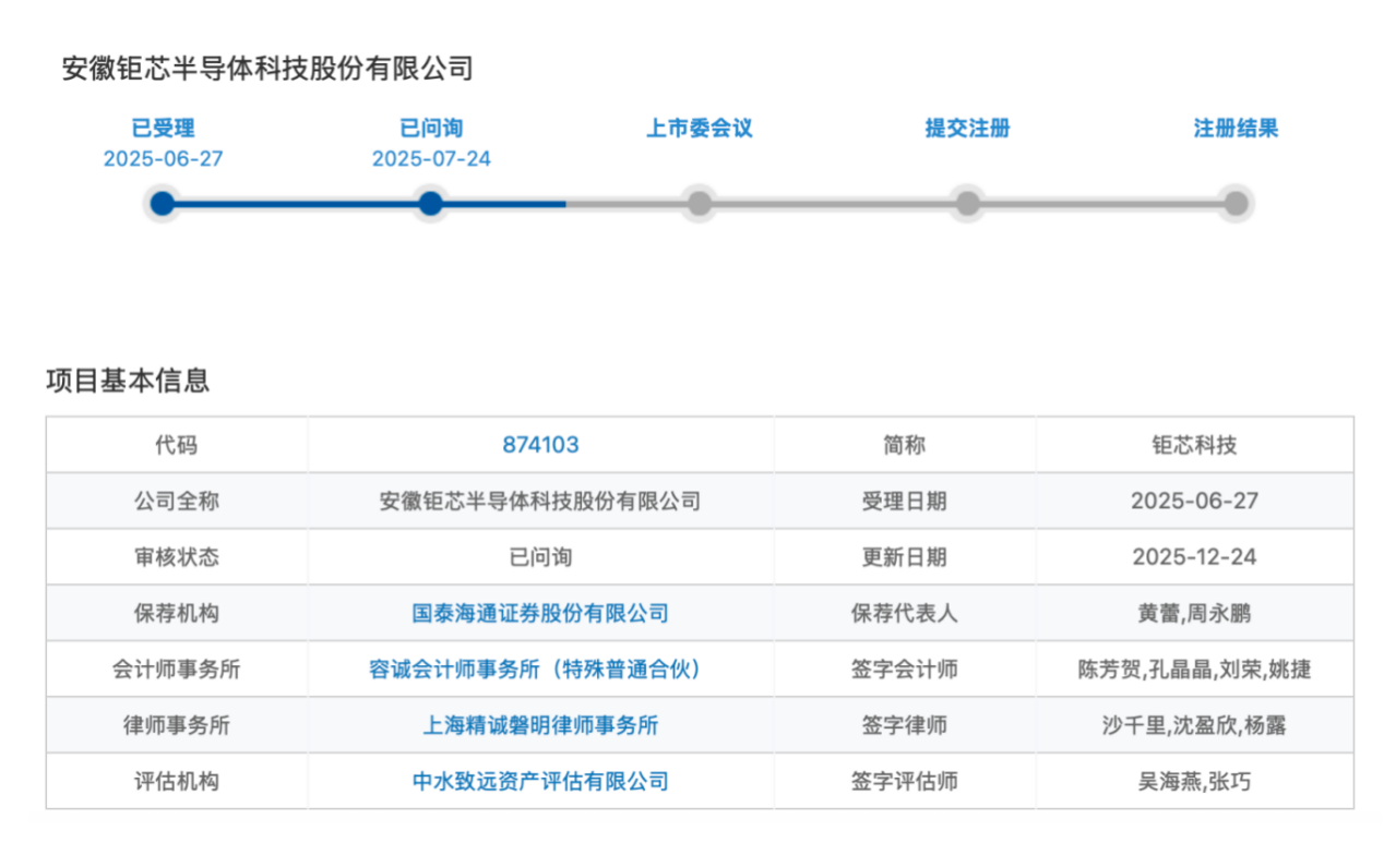 回溯上市历程,钜芯科技于2025年6月27日获受理,随后在7月24日和10月27日先后收到首轮及次轮审核问询函。在10月对首轮问询的回复中,公司重点说明了市场地位、持续经营能力、存货构成变动及募投必要性等问题。