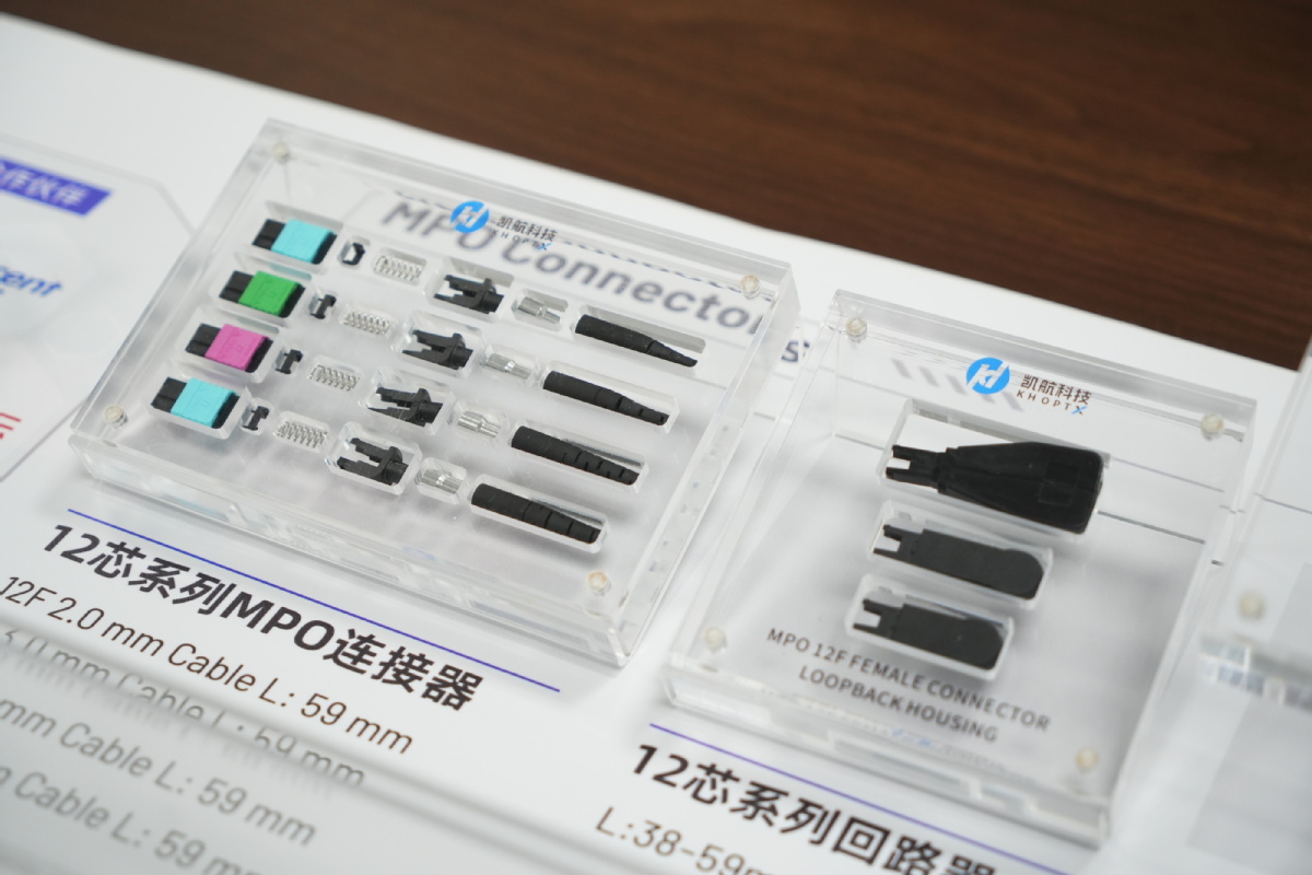 1月14日,谢岗镇碧桂园智造中心内的东莞市凯航科技有限公司(以下简称“凯航科技”)车间里,机器轰鸣不断,企业正开足马力加快生产赶订单。公司董事长刘磊手持一款小巧的通讯连接器介绍:“这款覆盖12至48通道的产品,已成功打入国内外多家互联网大厂供应链。”