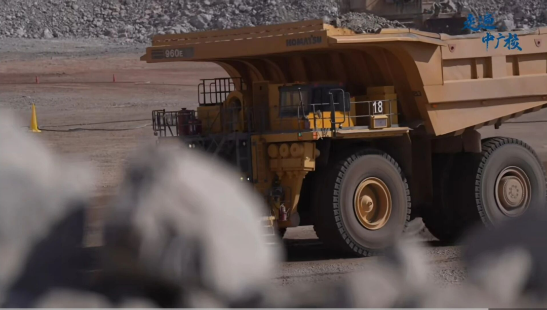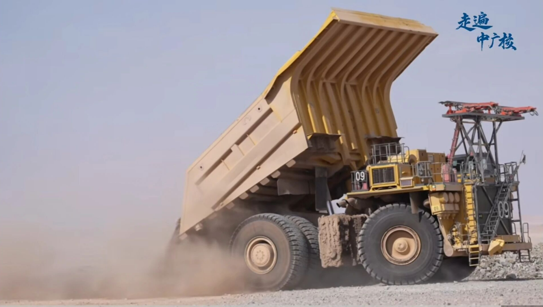 这里是纳米比亚湖山铀矿,随着镜头走进矿区,可以看到矿区内随处可见4米以上的大型矿卡。在完成严格的酒驾排查与车辆刹车检查后,作业人员方可驾驶矿卡进入矿区。