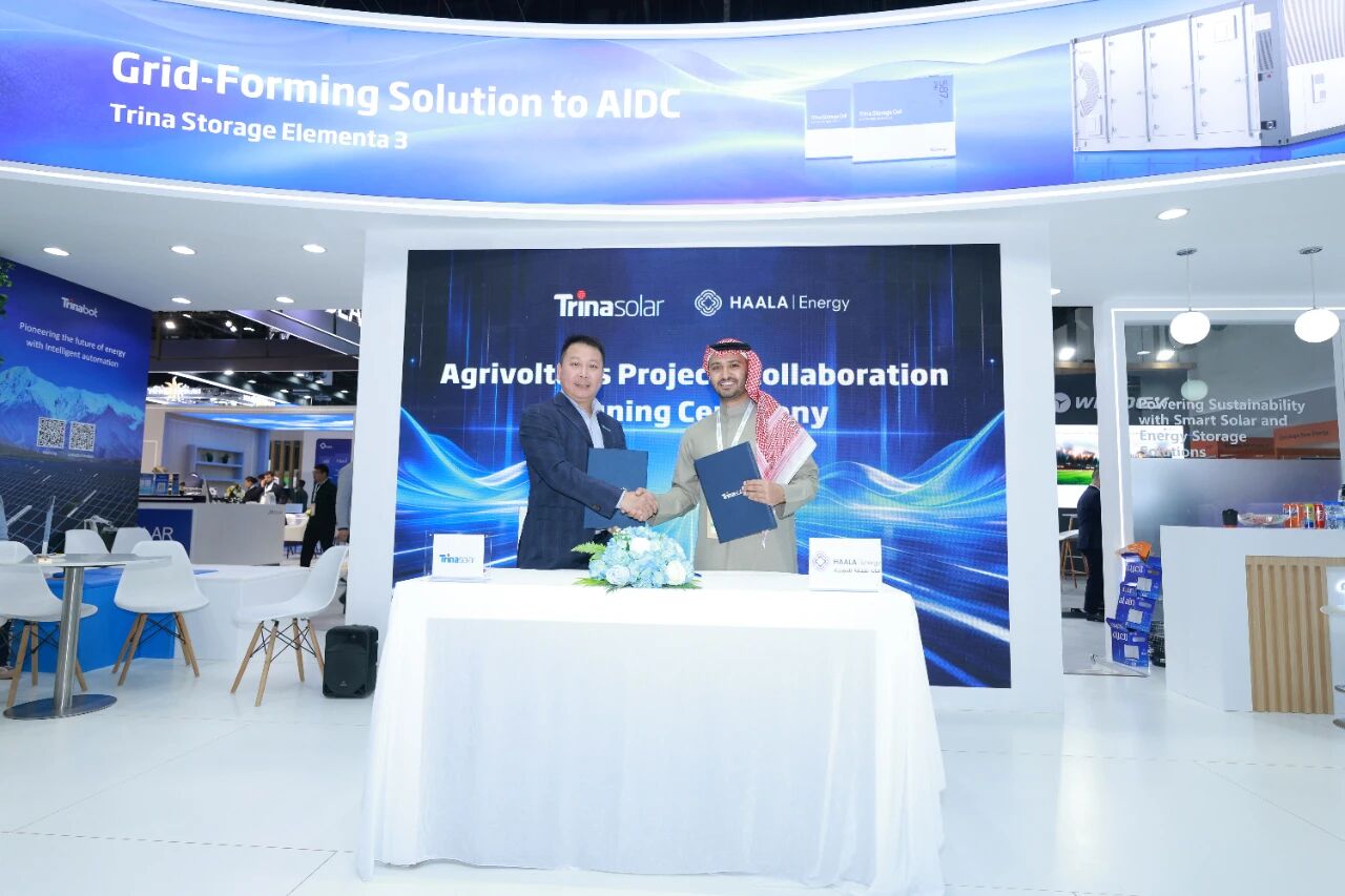 1月14日,在世界未来能源峰会(WFES)上,天合光能与沙特阿拉伯领先的光伏开发与安装商Haala Energy签署战略合作协议。此次合作聚焦沙特特色农业场景,致力于推动高效、可持续的光伏解决方案在沙特农光互补应用中的落地。