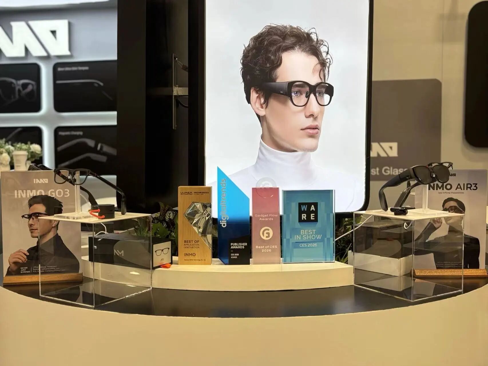 不仅如此,在刚刚结束的CES大会上,INMO GO3前脚刚完成海外秀,后脚就斩获多项权威大奖。品牌更是荣获了世界AI眼镜联盟与ShowStoppers联合颁发的“Best of Application Innovation CES 2026”奖项,成为展会最赢家之。