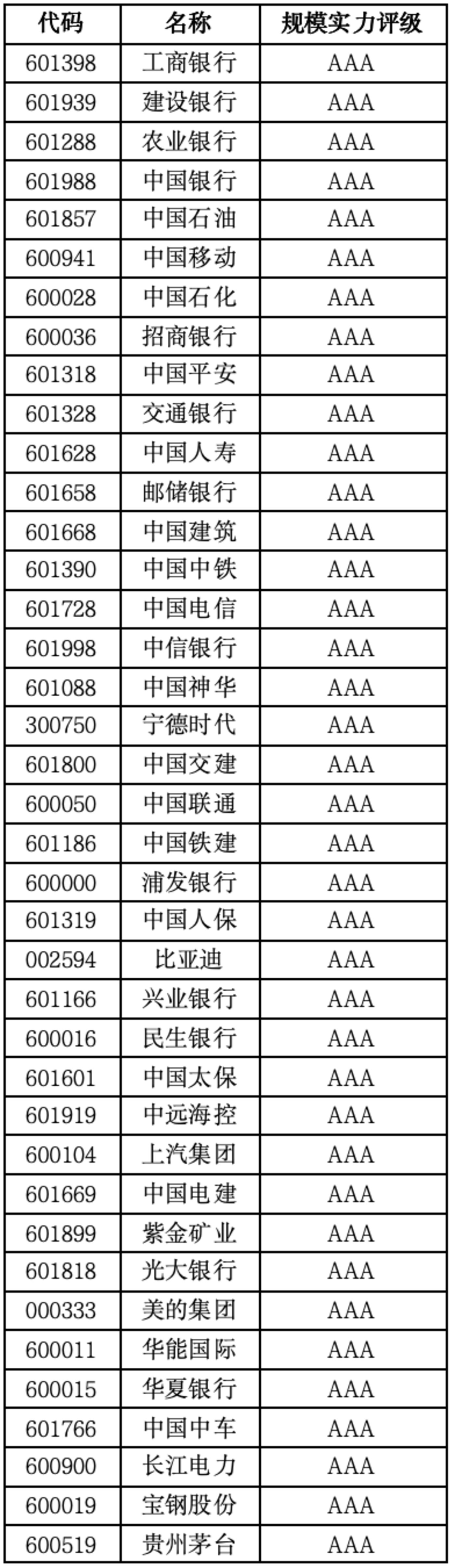 基于济安金信最新发布的上市公司竞争力评级数据,我们整理出“A股规模实力”维度排名前100的公司名单。这些企业不仅体量庞大,更在市场占有率、品牌知名度、供应链掌控力、资本运作能力等方面做到行业领先。