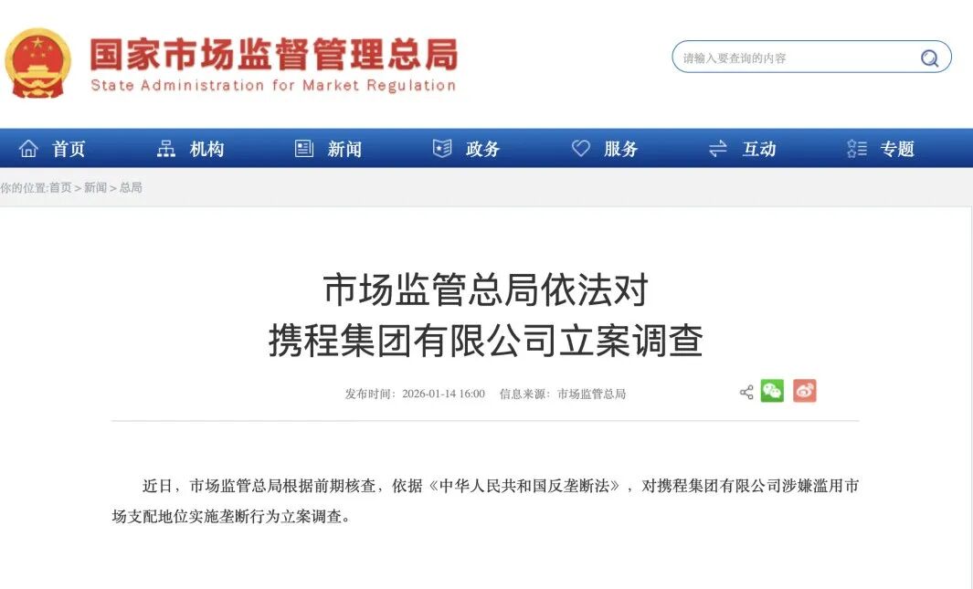 近日,国家市场监督管理总局发布公告,依据《中华人民共和国反垄断法》,对携程集团有限公司涉嫌滥用市场支配地位实施垄断行为立案调查。这一消息迅速在资本市场与旅游业引起巨震。继阿里、美团之后,在线旅游(OTA)行业的绝对霸主携程成为监管聚焦的新目标,标志着中国对平台经济的反垄断监管已从电商、外卖领域延伸至更为垂直、复杂的服务交易场景。