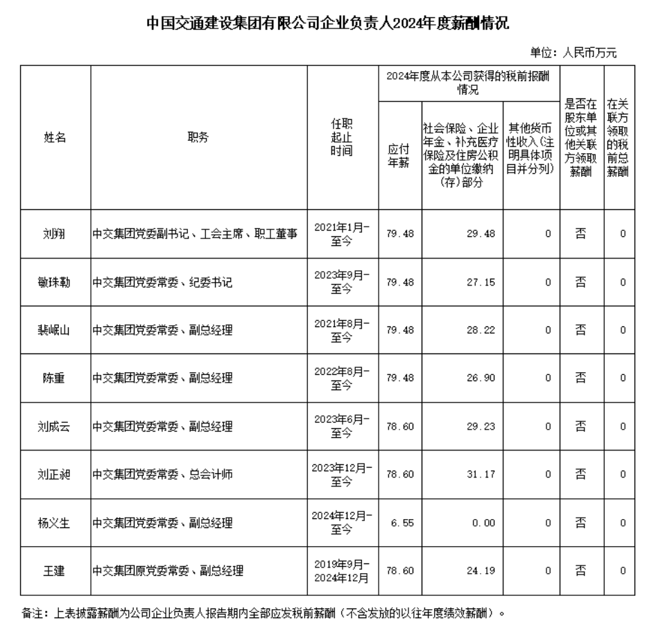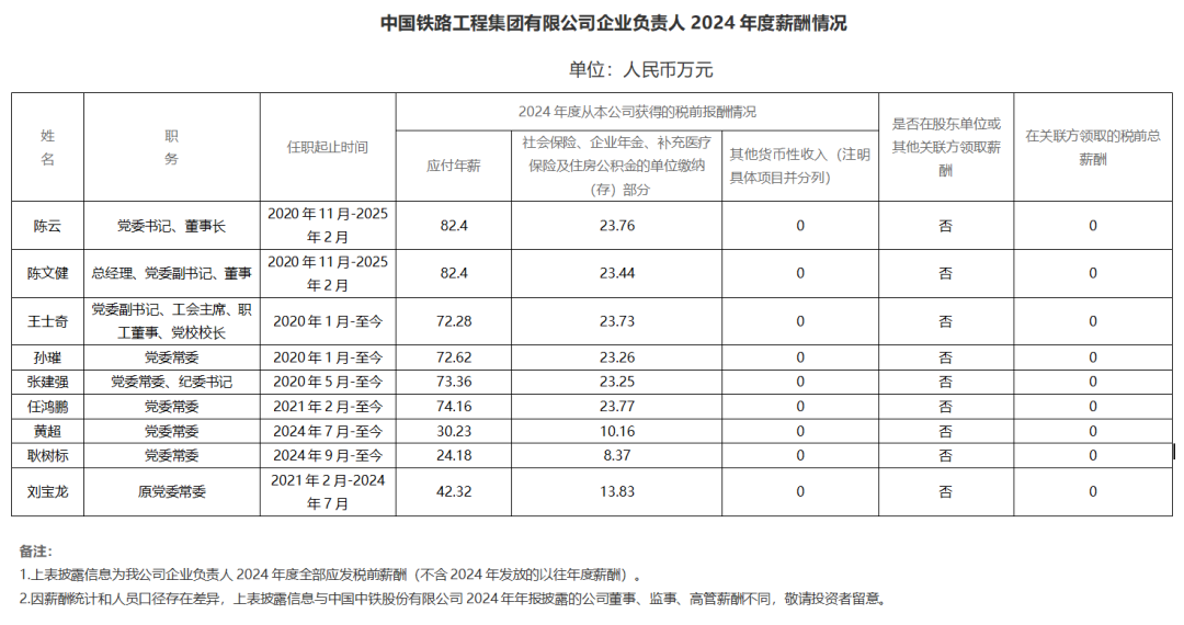 中车、中铁、中铁建、中建等央企领导薪酬曝光
