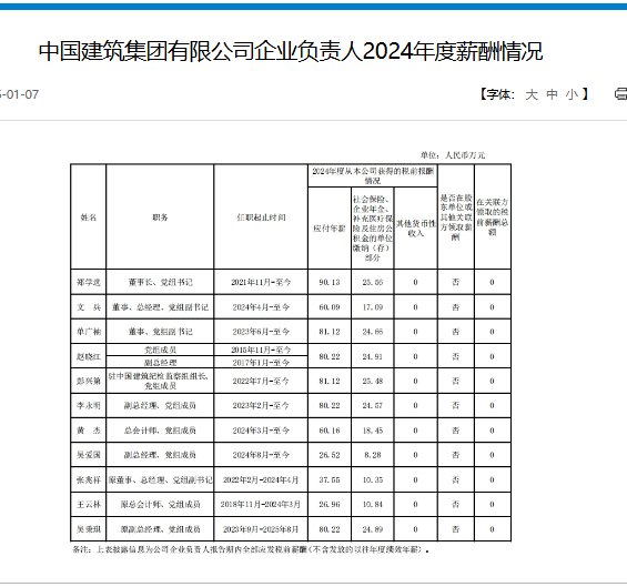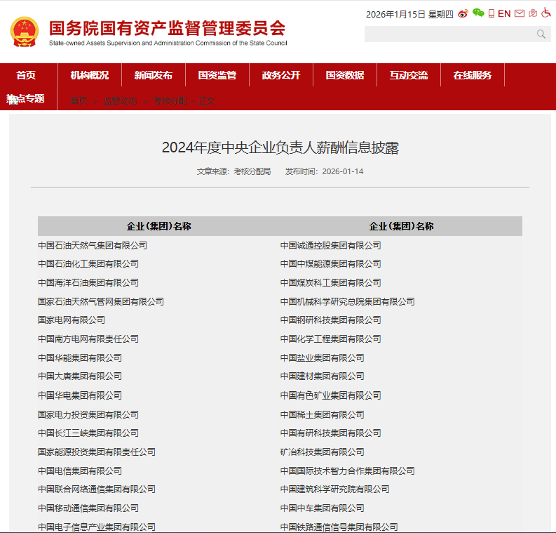 14日,国务院国有资产监督管理委员会官方网站发布了“2024年度中央企业负责人薪酬信息披露”。
