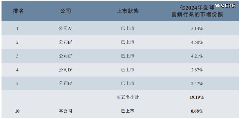 全球营销行业企业排名,来源:招股书