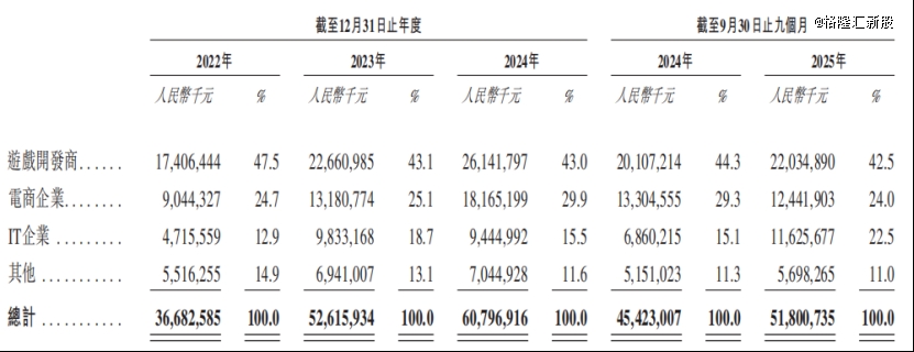 按直接客户所属行业划分的收入明细,来源:招股书