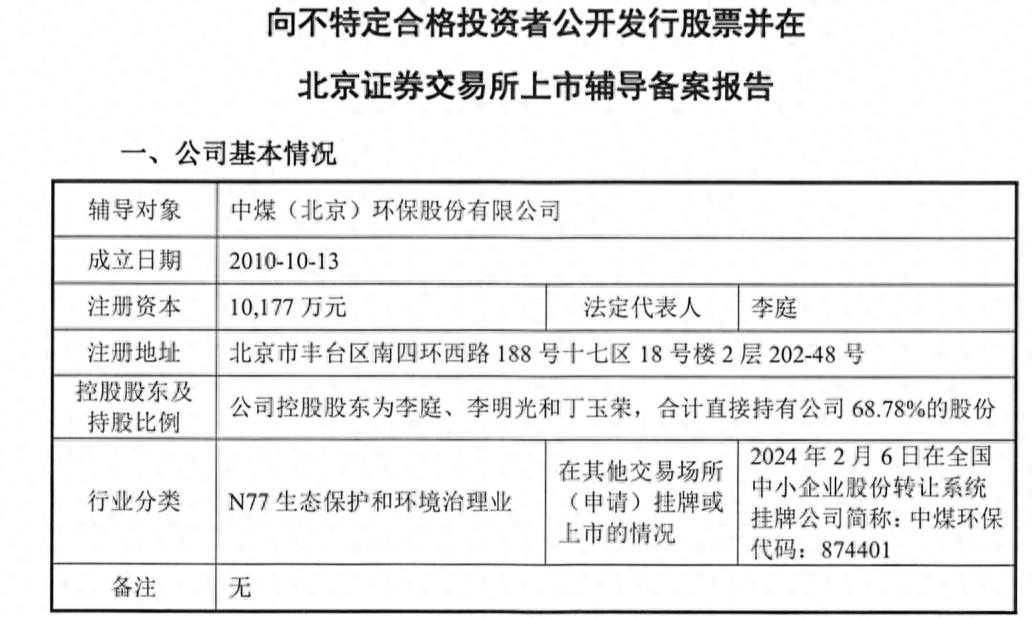 瑞财经严明会近日,中煤(北京)环保股份有限公司(以下简称:中煤环保)完成IPO辅导备案,拟北交所IPO,辅导机构天风证券。