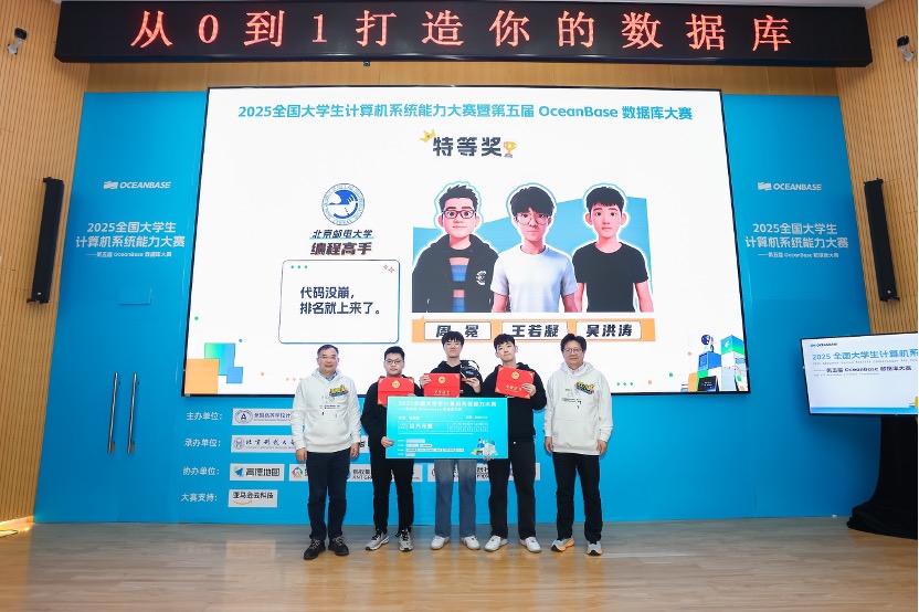 【TechWeb】1月18日消息,今天下午,2025年全国大学生计算机系统能力大赛暨第五届OceanBase数据库大赛在北京科技大学落幕。本届赛事吸引全国高校的1223支队伍、2620名学生参赛。经过两个多月比拼,北邮「编程高手」队凭借在数据库内核优化与AI应用开发中的综合表现,夺得冠军及10万元奖金。