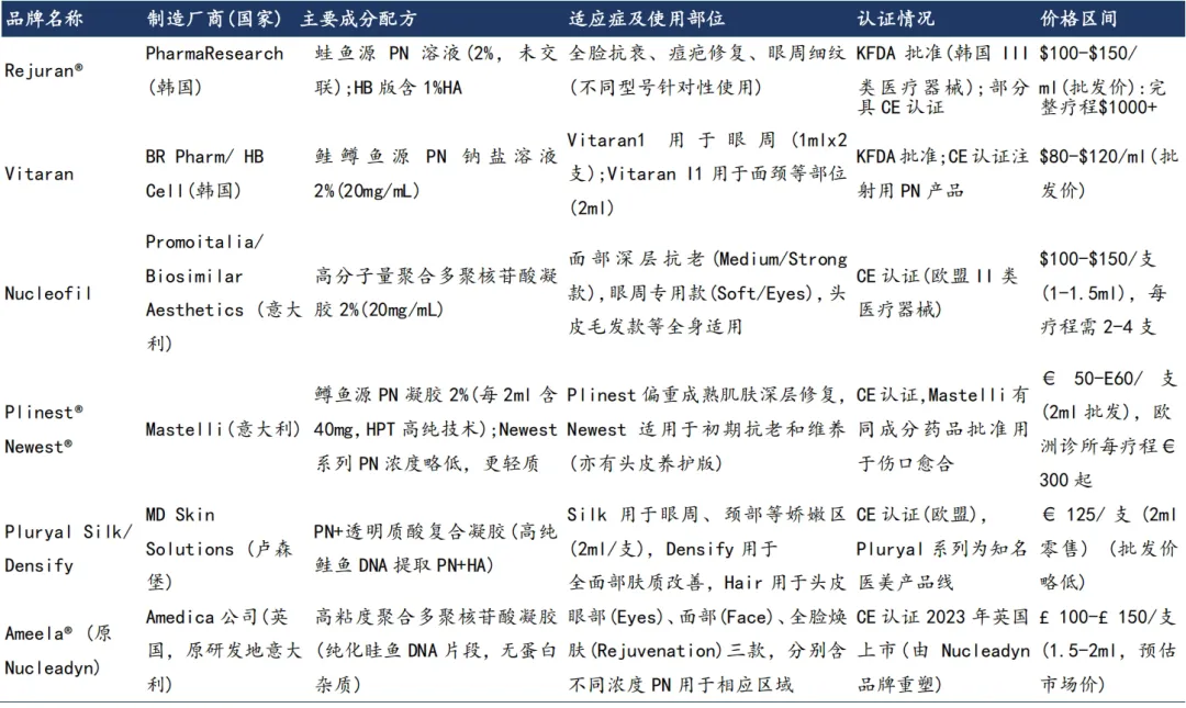 PDRN进口产品参考价格/图源:国金证券报告
