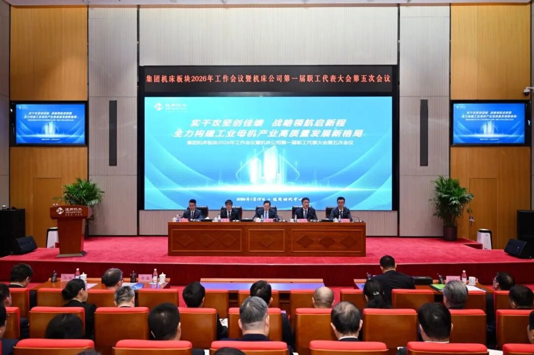 1月18日上午,通用技术集团机床板块2026年工作会议暨机床公司第一届职工代表大会第五次会议在北京通用时代中心召开。会议以习近平新时代中国特色社会主义思想为指导,深入学习贯彻党的二十大和二十届历次全会、中央经济工作会议精神,认真落实集团2026年工作会议部署,全面总结机床板块“十四五”及2025年产业发展情况,准确把握“十五五”时期目标和任务,系统部署2026年重点工作,凝心聚力、鼓足干劲,推进高质量发展,确保“十五五”良好开局,为全力打造“世界一流高端机床装备和服务供应商”做出总动员。