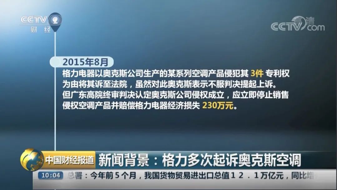 于是从2015年起,格力空调就多次以“侵犯专利”为由起诉奥克斯,一开始奥克斯根本无法招架,赔偿金额从230万元到4000万元逐渐递增。