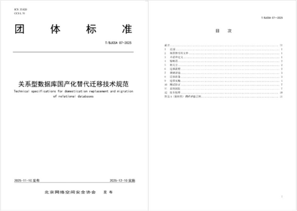 值得一提的是,双方牵头编制《关系型数据库国产化替换迁移技术标准》,将迁移调研评估、迁移准备、迁移实施、测试验证、系统割接、服务保障六大阶段纳入标准化管控体系。该标准已以团体标准形式由北京网络空间安全协会发布(标准编号:T/BJCSA 07-2025),为国内企业开展国外关系型数据库向国产关系型数据库的迁移工作提供了参考依据。