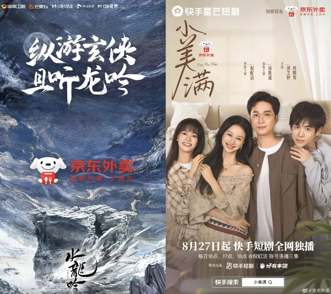 相比之下京东外卖的路径稍有不同,除投放一部长剧《水龙吟》之外,其资源还投向了2025年高热的短剧,比如冠名快手星芒短剧《小美满》等。不过不论是植入剧情还是每集末尾出现广告语,京东外卖在长剧和短剧的营销方式和效果本质上无太大差别。