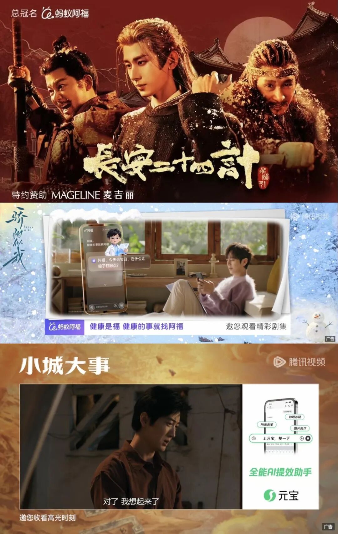 蚂蚁阿福x《长安二十四计》《骄阳似我》,腾讯元宝x《小城大事》