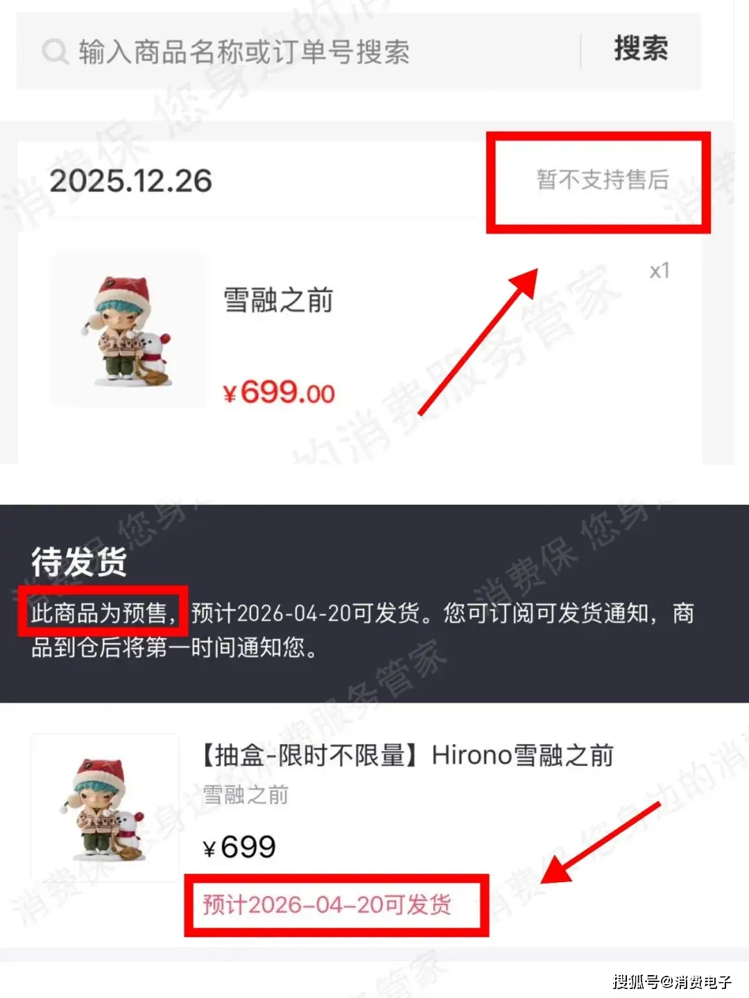 由于产品显示为预售款,将于2026年4月20日发货,她立即联系客服要求退货退款,却被告知:该产品为线上拆盒玩法,不接受退货退款。吴女士不解,该手办既然是预售款,要到4月下旬才能发货,说明当前可能都未生产出来。“当下根本没有生产,何来‘拆盒’一说?”她认为这是霸王条款。