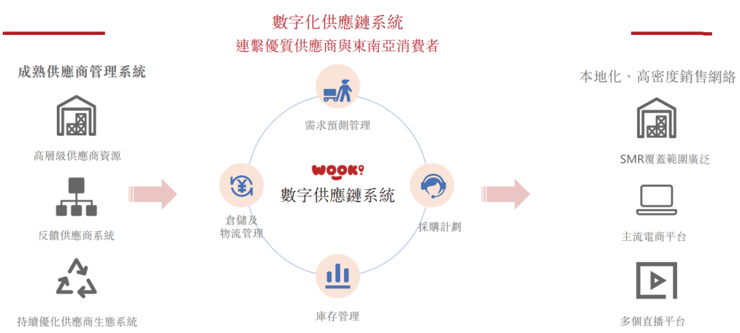 公司依托自主开发的全链路数字平台,整合从工厂到零售终端的全链条资源,有效破解东南亚市场线下渠道分散、物流低效高成本、仓储资源短缺及数字化程度低等核心难题,凭借自营仓储物流网络与本地化运营团队,形成“品牌+数字化+供应链”的综合竞争力。