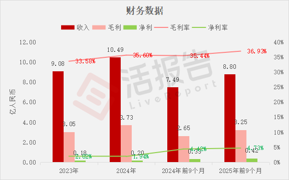 收入分别约为人民币9.08亿、10.49亿、7.49亿、8.80亿,2025年前9个月同比+17.56%;