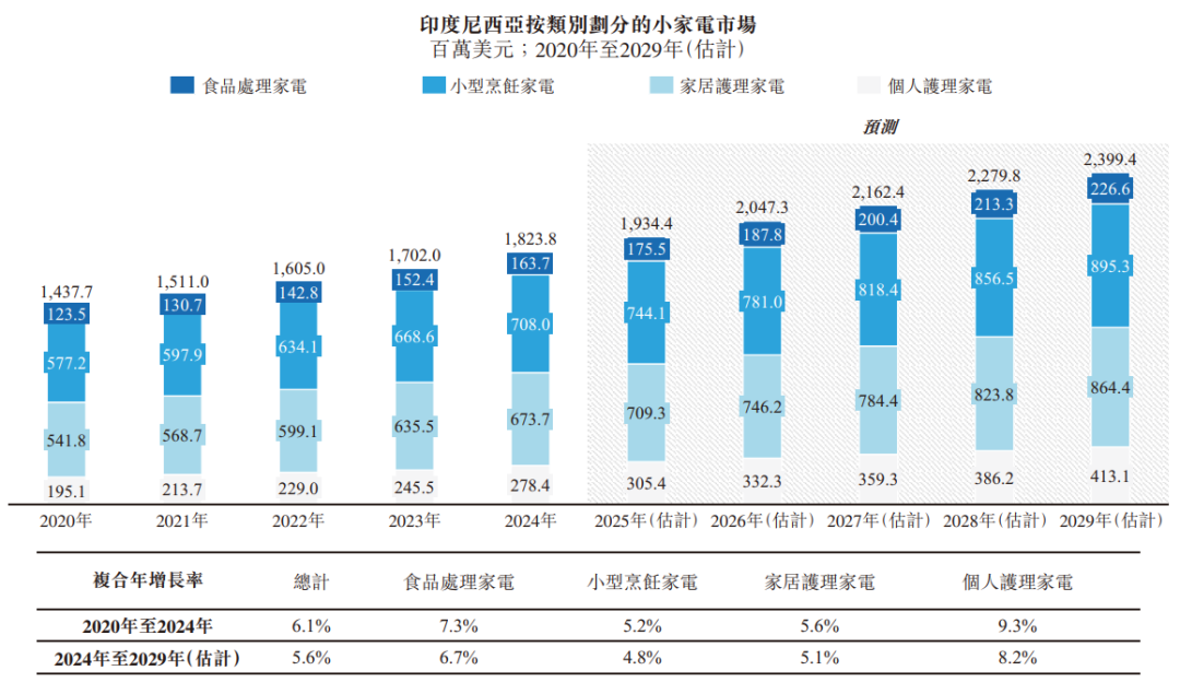 在统一计量基准下,公司2024年在出口至印度尼西亚的中国跨境小家电公司中排名第六,零售销售价值达约人民币115.0百万元,占中国至印度尼西亚小家电出口市场约2.6%。同年,出口至印度尼西亚的十大中国小家电公司的零售销售价值合计达约人民币1,795.0百万元,占市场约40.9%。