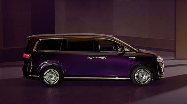 侧面线条四平八稳,最能彰显整车的气势,还配备了镀铬装饰件、传统样式门把手以及密辐条轮圈,营造豪华感,这点还是值得点赞,做到了迎合用户主流审美而非教育消费者。