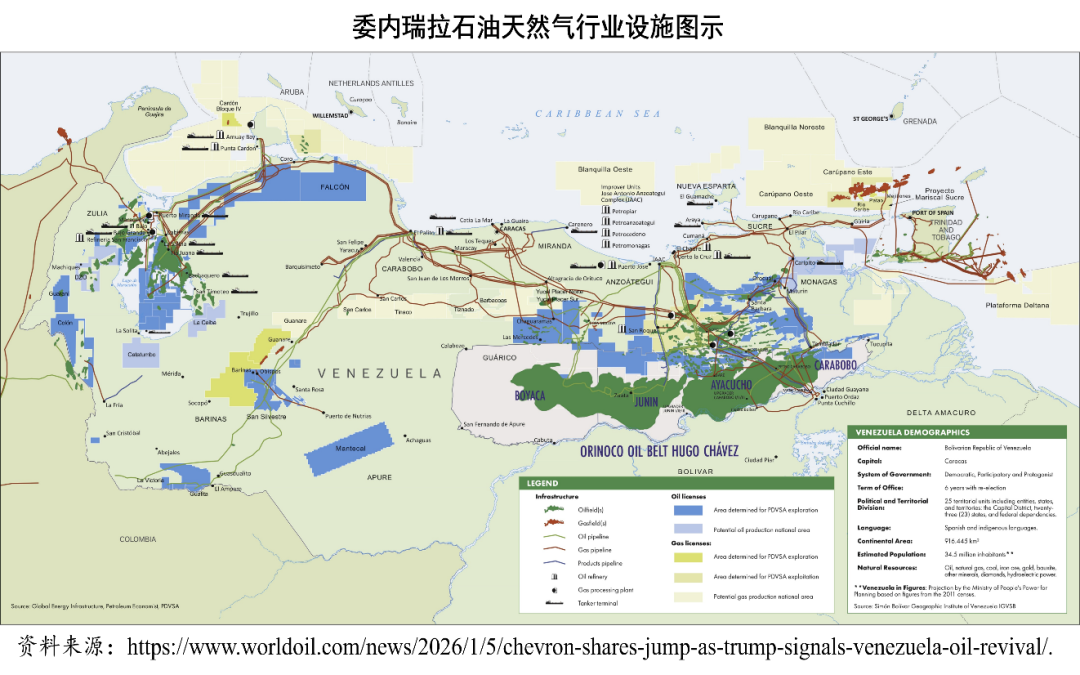 目前来看,长期的反对派领导人玛丽亚·科里纳·马查多提议对委内瑞拉国家石油公司进行规模缩减,将资产转移给私人投资者,开放所有潜在的勘探区域以供勘探,并成立一个独立于国家石油公司的监管机构。她最近与特朗普的会面,在会上她向特朗普赠送了她于2025年获得的诺贝尔和平奖奖章(以表彰她为委内瑞拉人民争取民主权利所做的工作)。尽管委内瑞拉的代理总统(同时也是该国的石油部长和欧佩克代表)德尔西·罗德里格斯已承诺与华盛顿合作,但马查多在该国未来的角色似乎正在上升。由于委内瑞拉石油部门尚未出台任何明确的新法律,马查多的团队认为,在《反封锁法》下授予国际投资者的石油生产和参与合同可以继续执行,只不过会采用反映新的利润分享模式和税收制度的新版本。同样地,上周晚些时候,罗德里格斯向国民议会提交了一项法案,旨在鼓励外国及其他私人投资进入其油田和基础设施领域,该法案旨在将《反封锁法》中包含的生产模式纳入委内瑞拉的《油气法》中,从而将这些投资引导至此前从未有过投资的新的油田以及那些缺乏基础设施的油田。