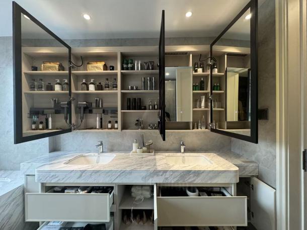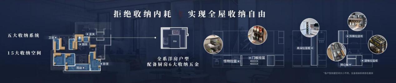 室内空间的重塑,是品质感的另一触达点。南京凤起潮鸣配置的270°无界系统窗,将天地景致引入室内。而针对现代家庭收纳需求繁杂的痛点,绿城更进行了系统性的“收纳革命”,设计了玄关、厨房、卫浴、阳台、卧室五大收纳系统。南京云庐约143平方米的户型中按功能分布的15组收纳系统,总容量超29立方米,可放下约628个登机箱。苏州沁百合玄关的“800库”设计,橱柜的满柜配置,卫浴空间的美妆冰箱、墙面壁龛、镜柜等,以精细化、人性化的收纳设计,将纷繁日常转化为整洁、高效与有序的品质生活。