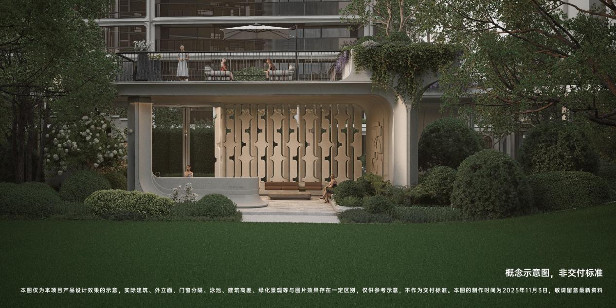 对家庭成员关系的滋养,则体现在“全龄聚场”的构建之中,打造一处能促进代际交流、激发邻里温度的共享空间。上海潮鸣外滩将核心区化为一片开放的中央公园,社交卡座、主题花园、观景平台、多功能会所等场景交织,让不同年龄的居民都能在此找到属于自己的惬意角落,让陪伴与相遇自然而然地发生。