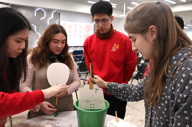 “颉颃计划”实践队在“LAOSHI”中文教育机构体验扎染漆扇