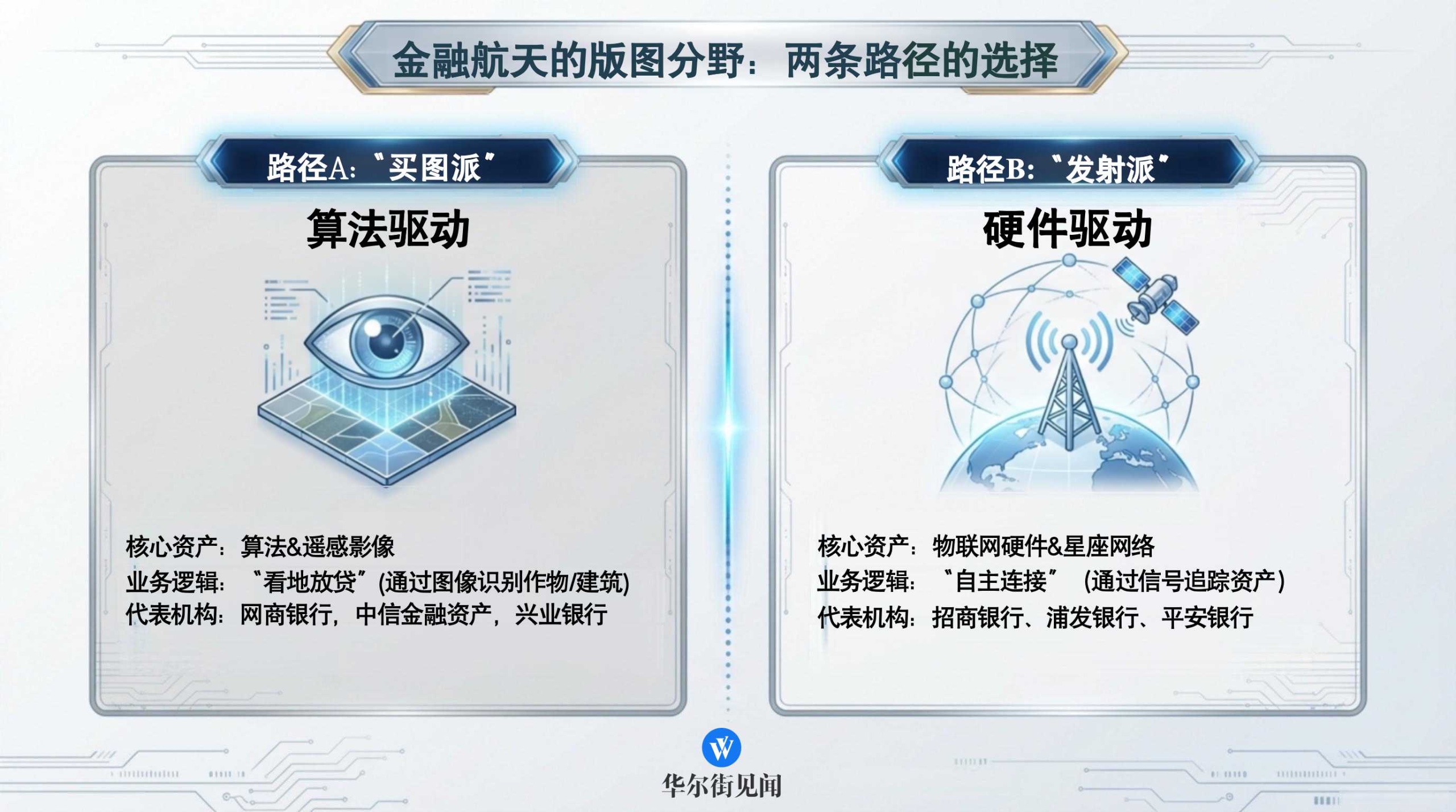 在当前的金融航天版图中,各家银行根据自身禀赋与战略诉求,逐渐分化为两条路径: