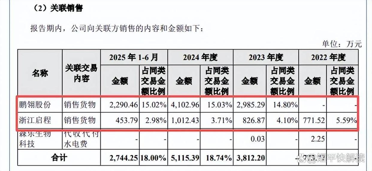 除此之外,公司对另一关联方浙江启程汽车部件有限公司(浙江启程)的销售额分别为771.52万元、826.87万元、1,012.43万元、453.79万元,期末与鹏翎股份的销售额合计占比18%。