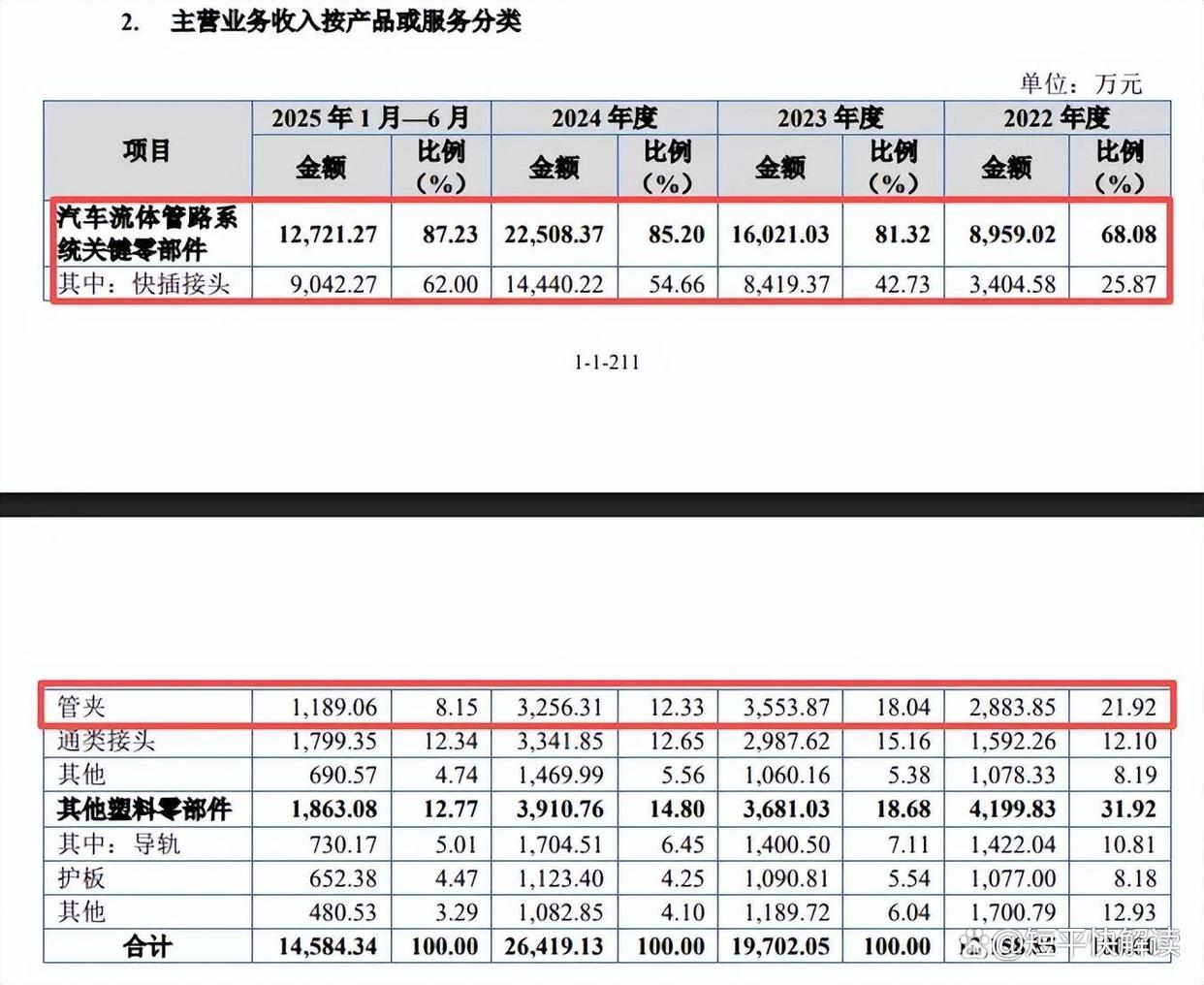 该类型产品包括快插接头、管夹、通类接头等,其中快插接头收入猛增,分别为0.34亿元、0.884亿元、1.44亿元、0.9亿元,收入占比从25.87%上升至62%,而管夹收入存在波动,分别为0.29亿元、0.36亿元、0.33亿元、0.12亿元,收入占比从21.92%下滑至8.15%。