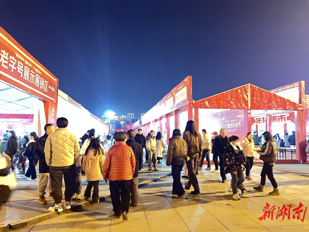 福利狂欢更是诚意满满。家电数码区推行以旧换新政策,15%国补优惠助力新春焕新;湘西老字号、农副特产直供让利,性价比拉满;商企业利用抖音、快手、小红书、淘宝、天猫、京东、拼多多等电商平台直播带货,并联合抖音发放消费补贴券,再加上“湘西年味直达”快递与同城送货上门服务,让市民足不出户就能把湘西年味带回家。