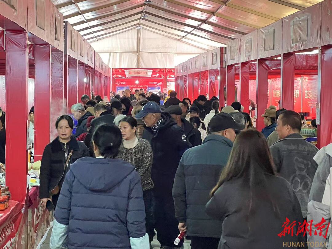 活动线下精心打造九大主题展区,近百个标准展位集结100余家企业、500余种优质好物,真正实现“一站式”备齐新春所需。“岁月匠心”老字号展区里,土家织锦的精美纹样、古法腊味的浓郁醇香、洗沙月饼的传统回甘交织,每一件好物都藏着时光的温度;而在“供销大集湘西好物”农副特产区,松柏大米、保靖黄金茶、龙山百合等富硒农产品带着山野清香,是年货清单上的健康首选;非遗文创区的苗绣银饰、特色小吃区的酸辣鲜香,更让市民沉浸式解锁湘西独有的年味风情。