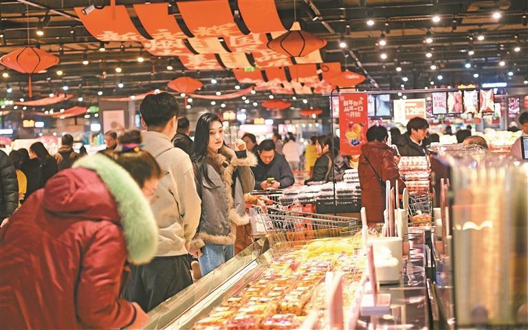 马蹄声渐近,年味日益浓。连日来,全市多家超市推出年货节,上架多款年货产品,为深圳市民提供一个覆盖多元场景、更显省心温暖的春节。今年也有不少外国友人和香港居民将“深圳手信”带往各地,许多商家也推出了一站式包装、代寄等省心服务。