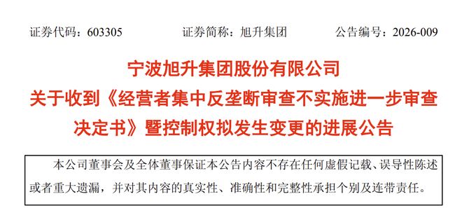 公告显示,经初步审查,市场监管总局决定对广州工控集团收购旭升集团股权案不实施进一步审查,即日起可以实施集中。这标志着控制权收购迈出了实质性的一步。