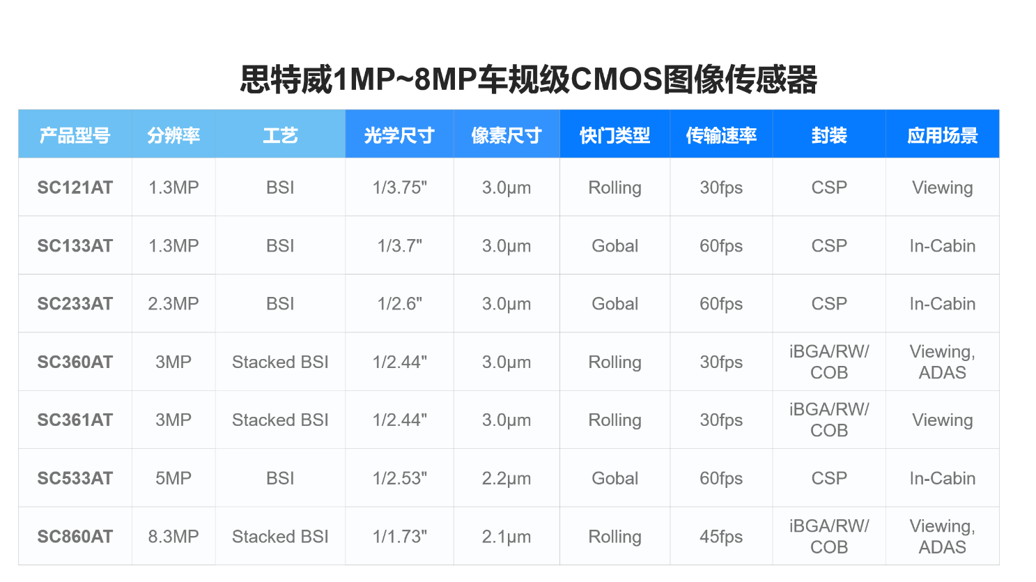 目前,思特威已构建起覆盖1MP~8MP全分辨率的车载CIS产品矩阵,全面适配ADAS前视、周视、后视、360°全景环视、舱内DMS/OMS监控、流媒体后视镜等全场景车载视觉应用。其中,3MP的SC360AT、SC361AT成为中高阶智驾车型的主流选择,5MP的SC533AT满足舱内高精度监控需求,2MP的SC233AT凭借全局快门加内置ISP的优势成为DMS应用的优质方案,而8MP的SC860AT则为高阶ADAS/AD前视感知提供了高分辨率成像支持,可实现200米以上的探测距离,为L2+及以上级别自动驾驶奠定硬件基础。