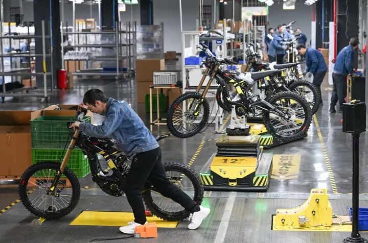 2025年12月,工人在重庆一公厂内组装新能源摩托车 陈诚摄