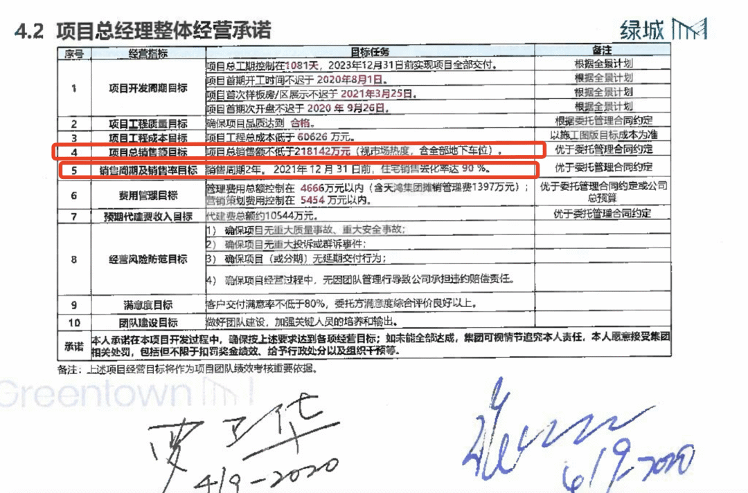 绿城给出的承诺是,项目总销售额不低于21.8亿元,2021年底前实现住宅销售去化率90%。