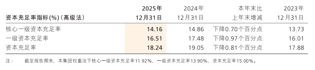 按一级资本排名,招商银行在全球1000家大银行中排名第8位,较2024年前进2位;期末总资本充足率18.24%,保持行业头部水平。