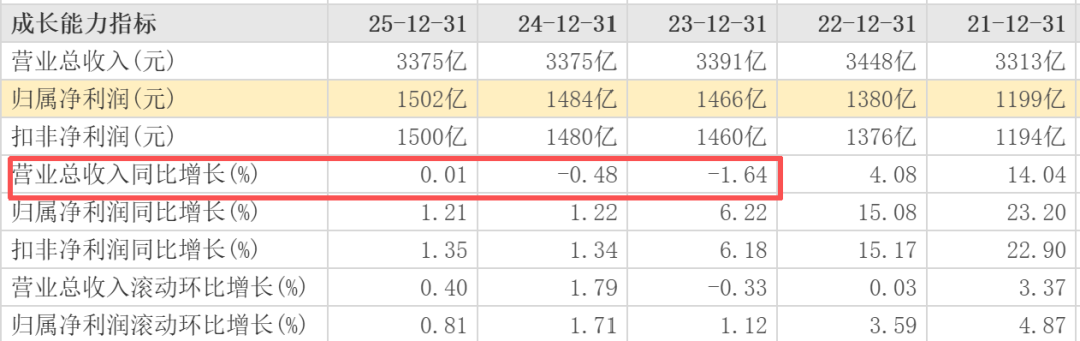 财报显示,2025年,招商银行实现营收3375.32亿元,同比增长0.01%;实现归母净利润1501.81亿元,同比增长1.21%,相当于日赚4.11亿元。