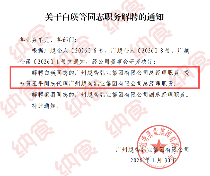 随着白瑛正式离职,其带入的蒙牛系中高层同步被全面清洗,核心岗位全部重置,越秀乳业收回全部经营权,重新回归稳健深耕、控费增效的既定路线。