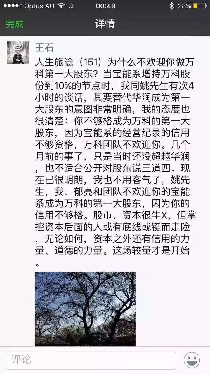 面对宝能的收购攻势,万科管理层迅速启动反击,打出“情怀牌”“治理牌”“文化牌”三重攻势。创始人王石率先公开表态,直言“宝能系民营企业身份不适配万科文化,不欢迎宝能成为大股东”,将一场正常的市场化收购行为,拔高到“破坏公司治理、颠覆企业文化”的层面,引发资本市场轩然大波。郁亮等核心高管紧随其后,不断向市场传递“宝能入主将影响万科稳定经营、损害中小股东利益”的信号,试图博取市场舆论和监管层的支持。