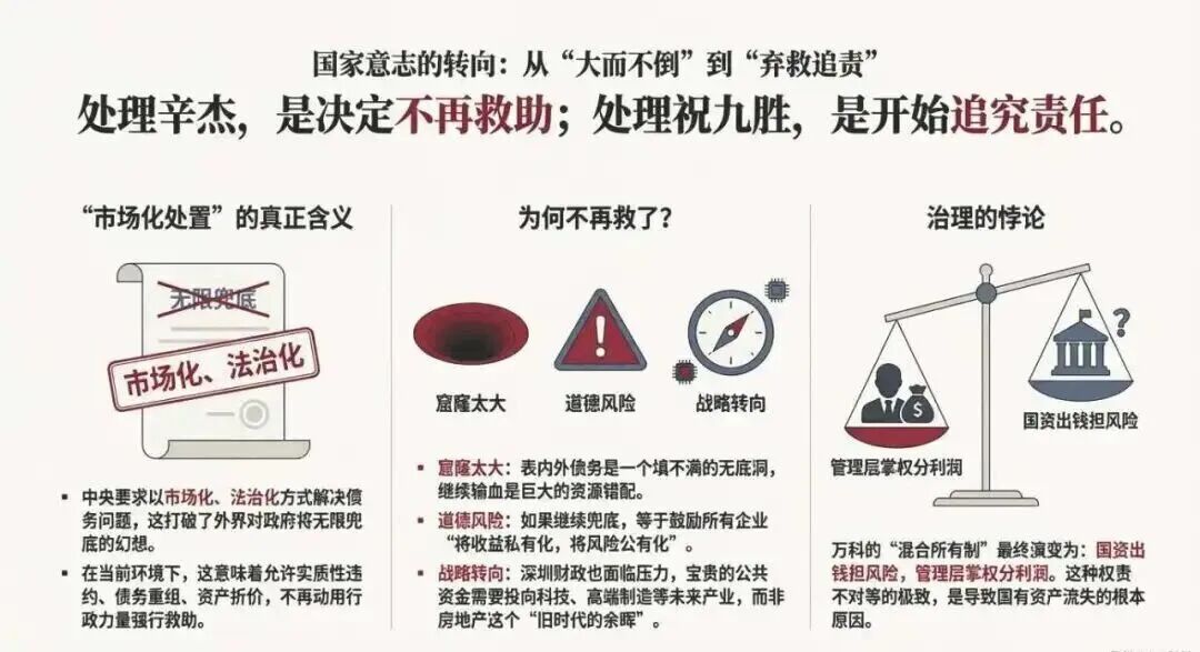 随着万科财务危机全面爆发,千亿亏损无法掩盖,项目停工、债务违约、员工维权、合作方举报等问题集中爆发,曾经纵容管理层的第一大股东深铁集团,终于从“被动输血救助”转向“主动全面清算”,一场针对万科核心管理层的追责风暴席卷而来,曾经风光无限的职业经理人团队,迎来彻底的覆灭,万科长达三十余年的职业经理人时代正式落幕。