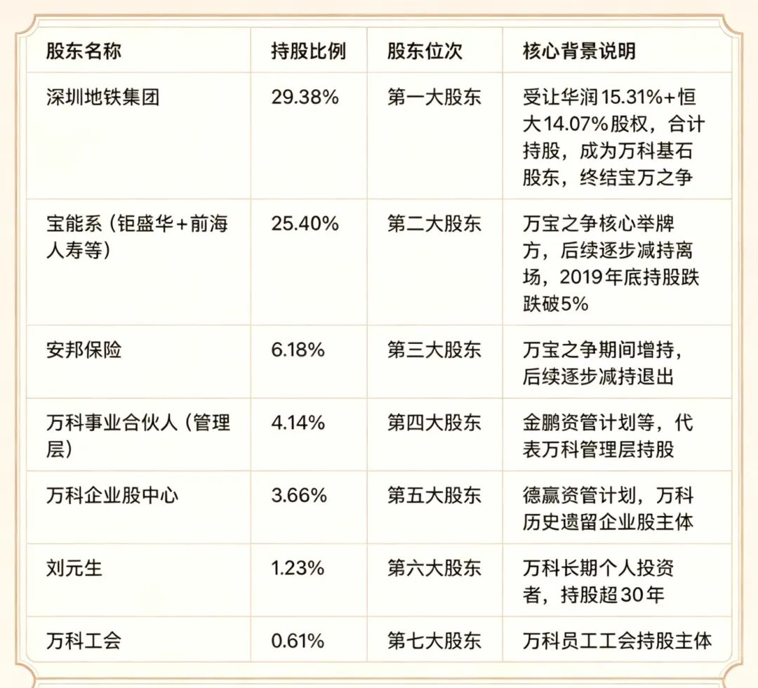 在宝万之争爆发前,万科的股权结构长期处于极度分散的状态,这也是其职业经理人制度得以运行的基础,但同时也为后续内部人控制埋下了先天隐患。自2000年之后,华润集团成为万科第一大股东,持股比例长期稳定在15%左右,第二大股东及其他流通股东持股比例均极低,没有任何一方股东能够对管理层形成有效约束。这种股权结构下,王石、郁亮为首的职业经理人团队,实际掌握了公司的经营决策权、人事任免权和战略制定权,股东层面更多是扮演监督和分红的角色,形成了“弱股东、强管理层”的独特治理格局。